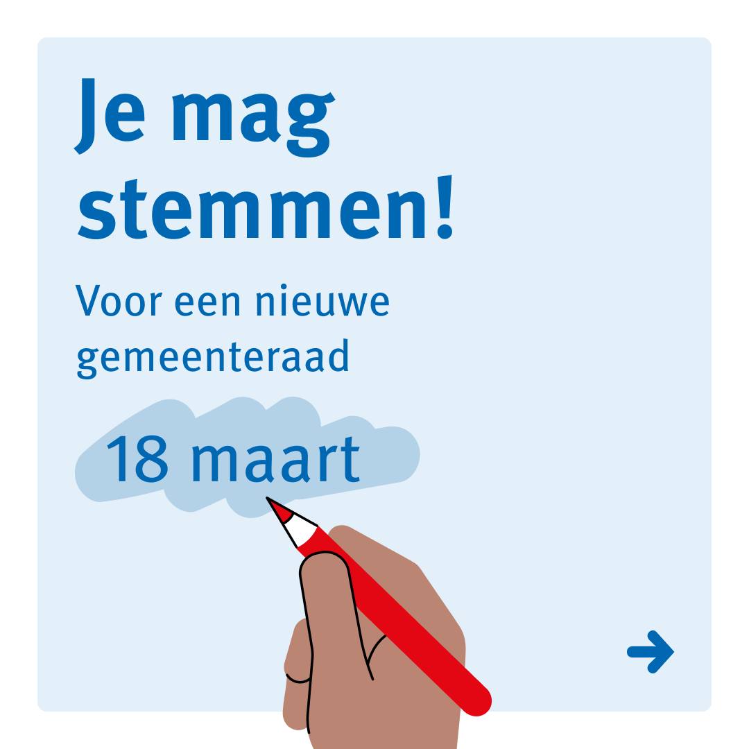 Op 18 maart bepaal jij wie er in de gemeenteraad komt. Zij beslissen over woningen, scholen, sportclubs, groen in de wijk, ouderen- en jeugdhulp. Kortom: de toekomst van jouw straat, wijk en gemeente. Het stembureau in Ommelanderwijk vindt u in dorpshuis De Molenwiek. Meer informatie staat op: www.veendam.nl/verkiezingen