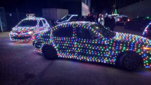 Stainkroeg stopplaats kerststoet verlichte auto’s